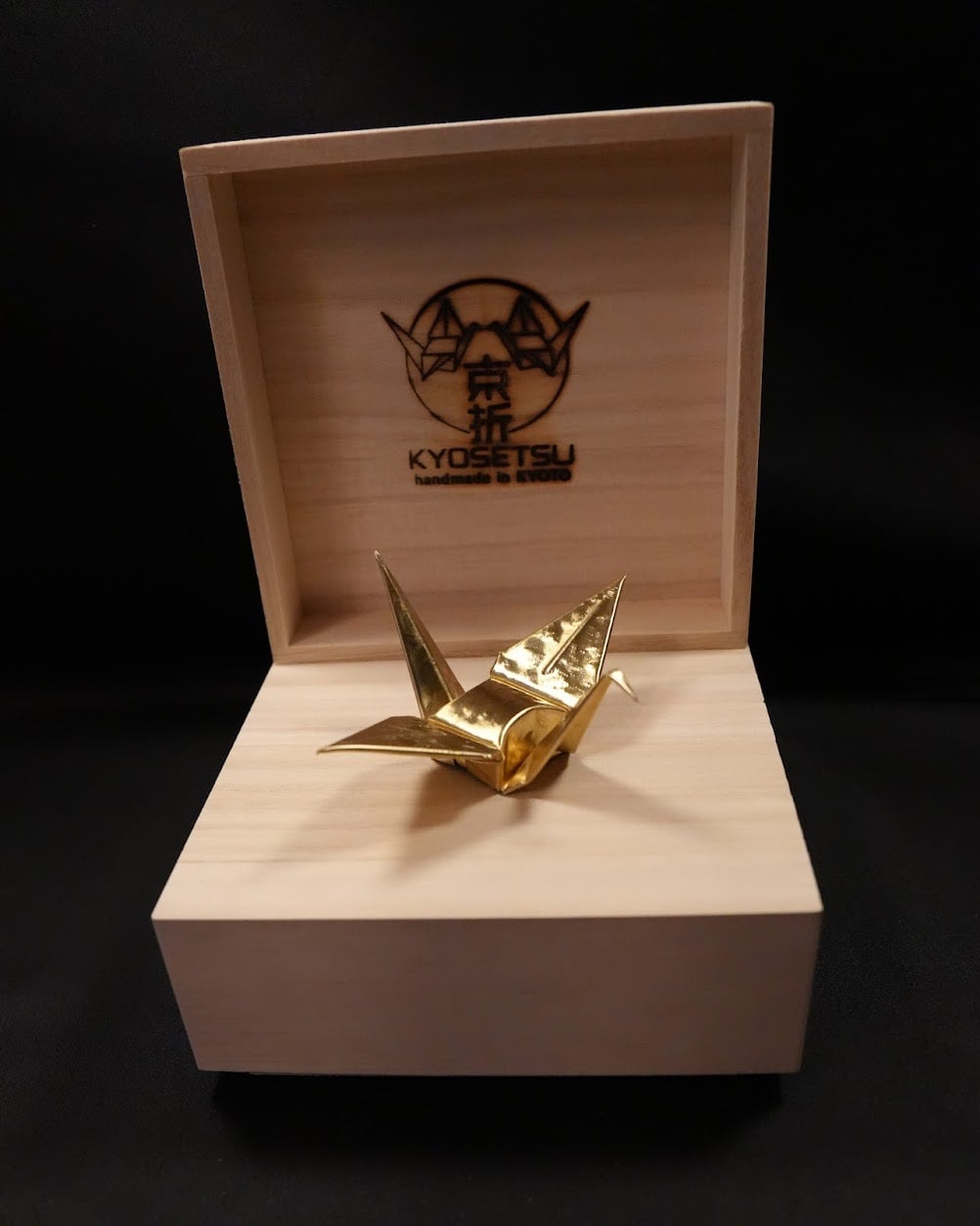 This special origami crane is hand-hammered from a single brass plate and folded entirely by hand by artisans in Kyoto.